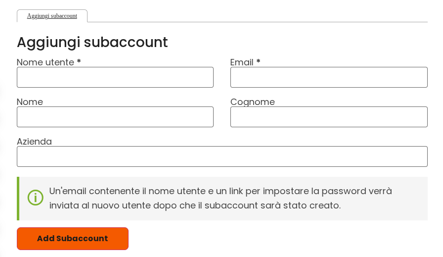 Inserisci i dati della persona per cui stai creando un sub-account: